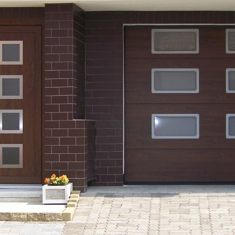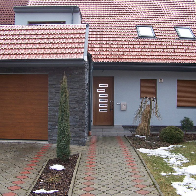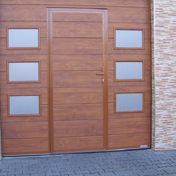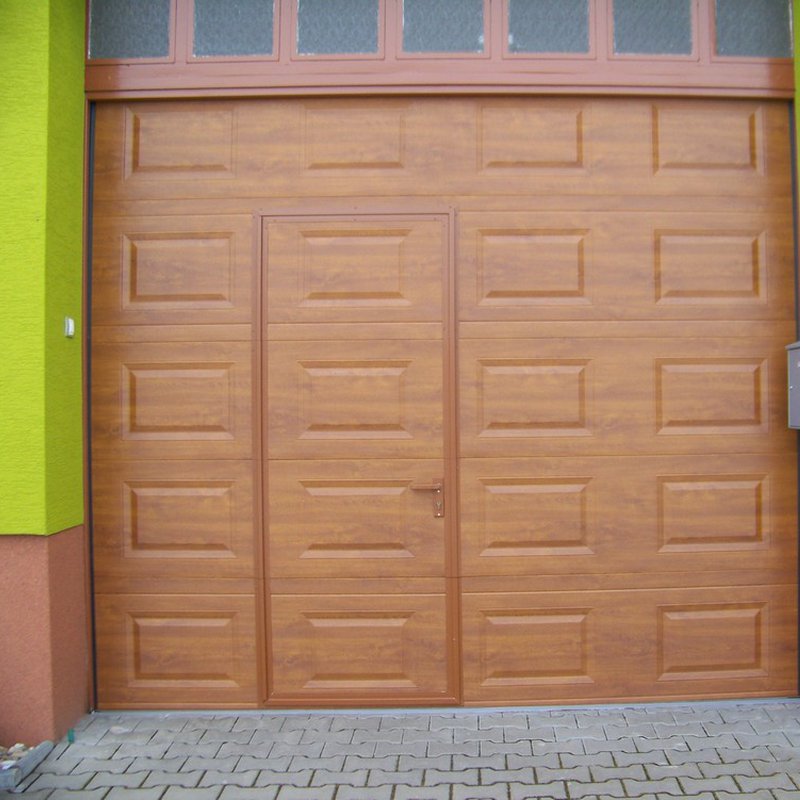 Do sekčních vrat lze zabudovat integrované dveře pro pěší průchod a doplnit různými průzory a okénky pro průchod světla.