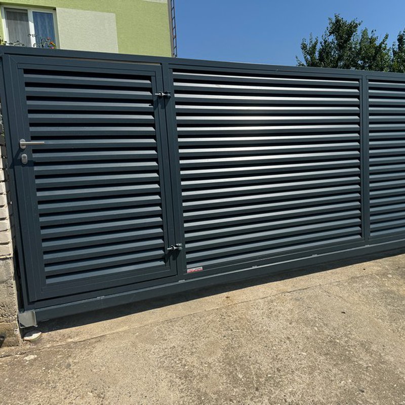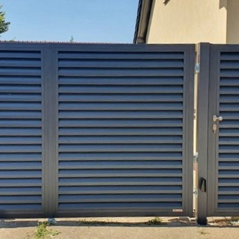 Dvoukřídlá brána s hliníkovou okenicovou výplní