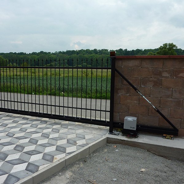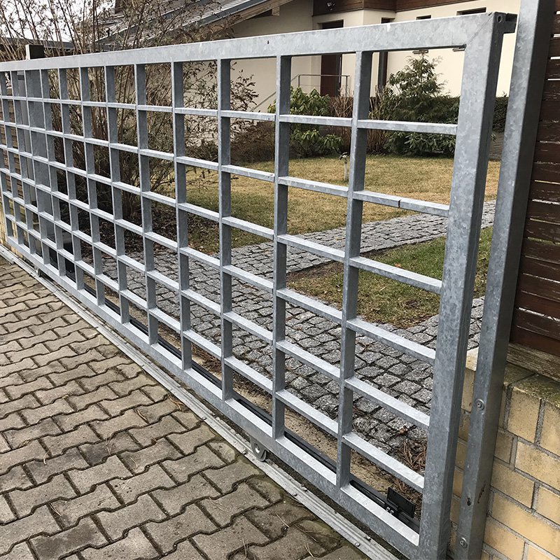 Kolejnicové brány nepotřebují tak silný pohon, proto jsou oproti samonosnému provedení levnější.