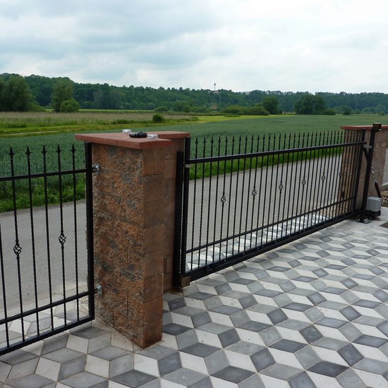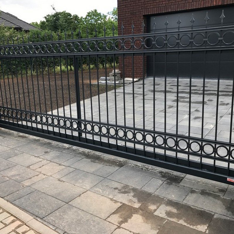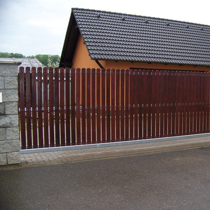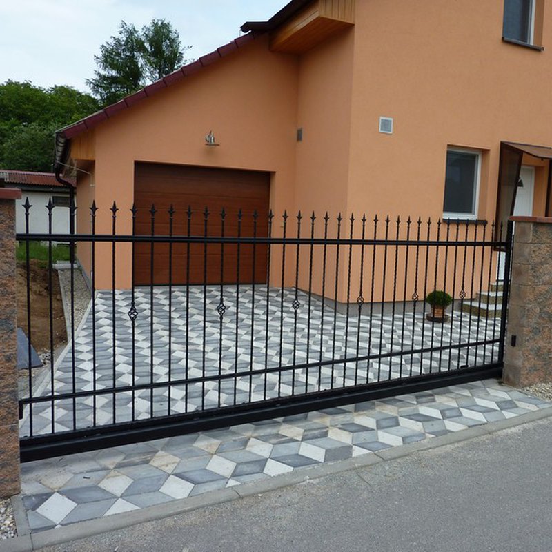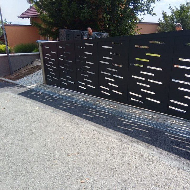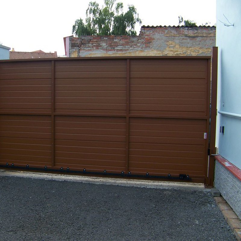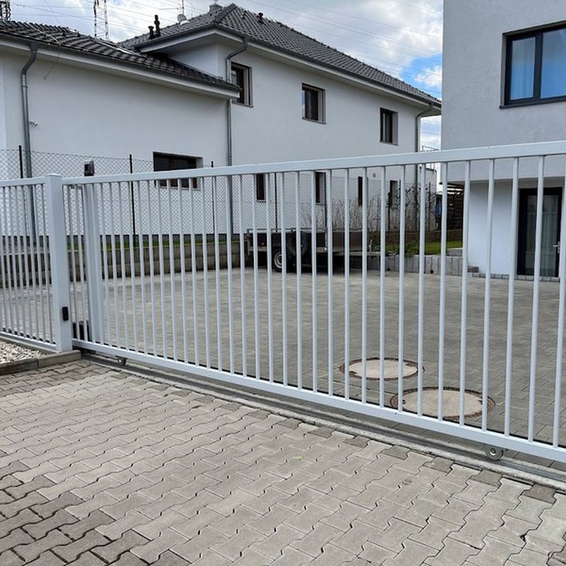Kolejnicové brány jezdí na kladkách po kolejnici. Otevírají se do strany podél oplocení. Nezúží tak průjezdní prostor.