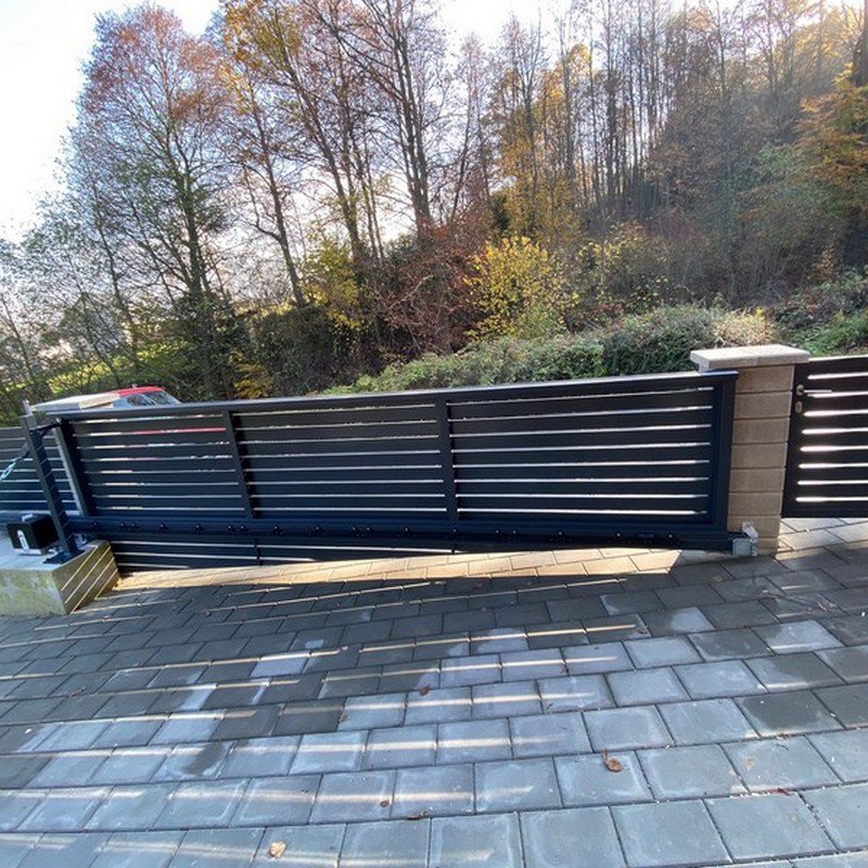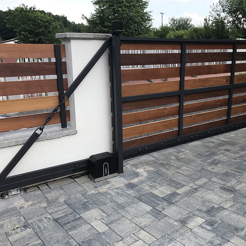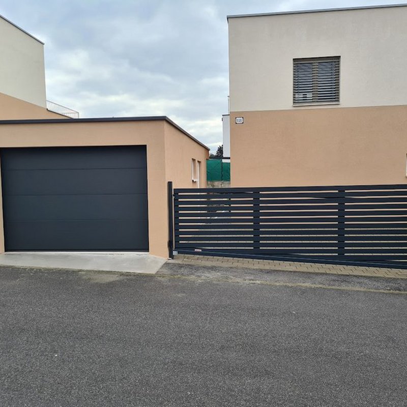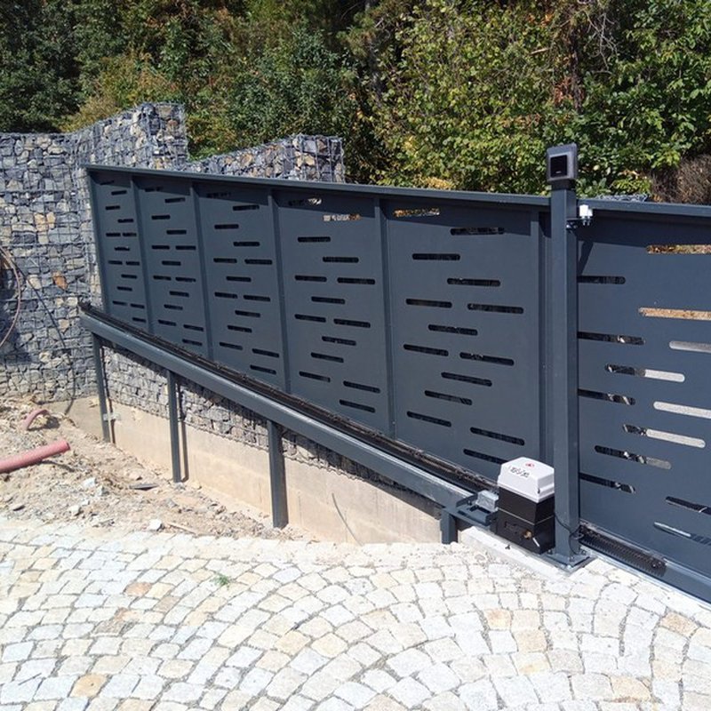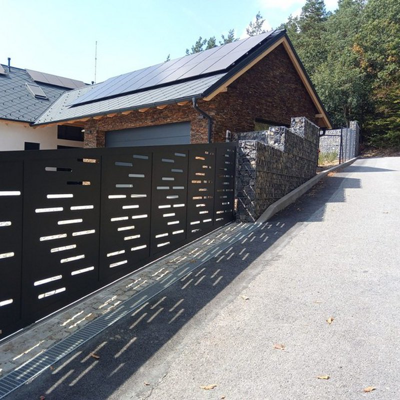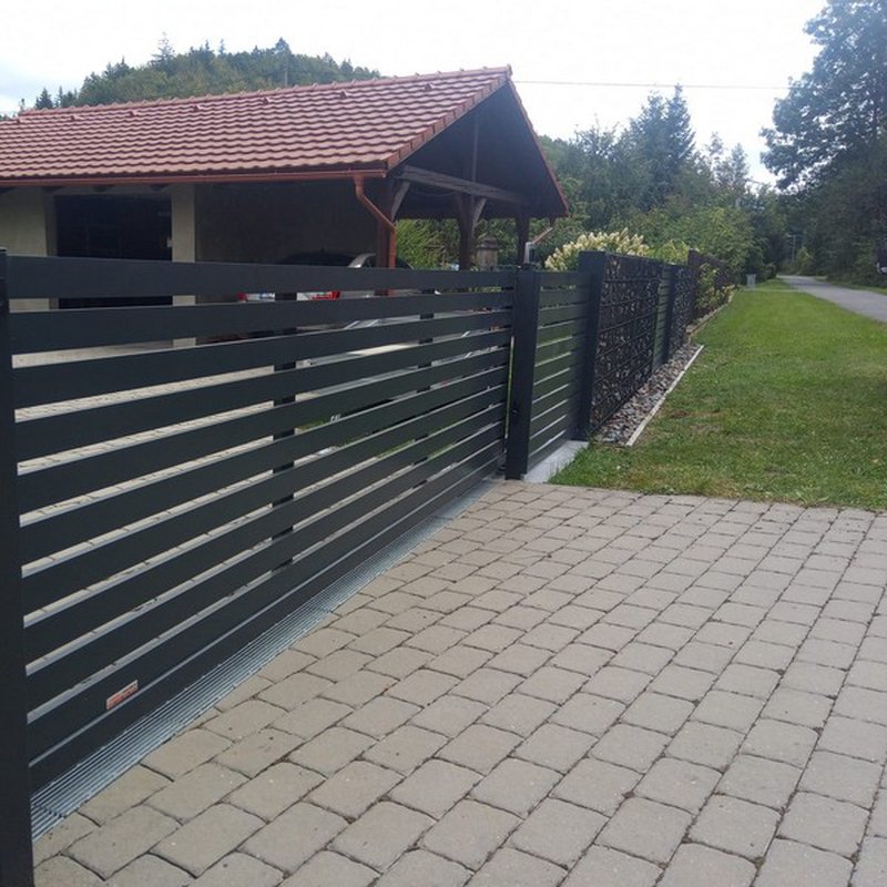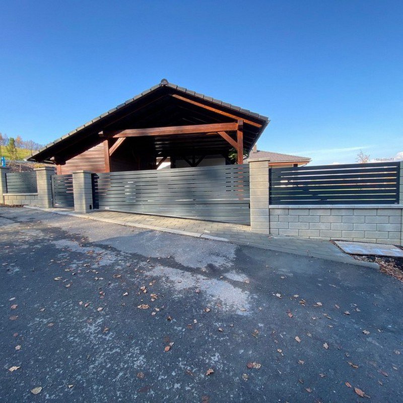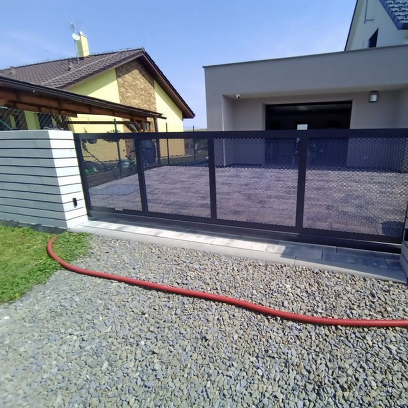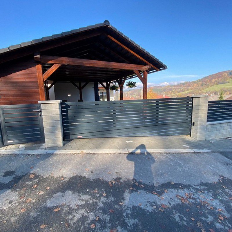 Samonosné posuvné brány jsou zavěšeny nad zemí a otevírají se do strany podél oplocení. Nezúží se tak průjezdní prostor.