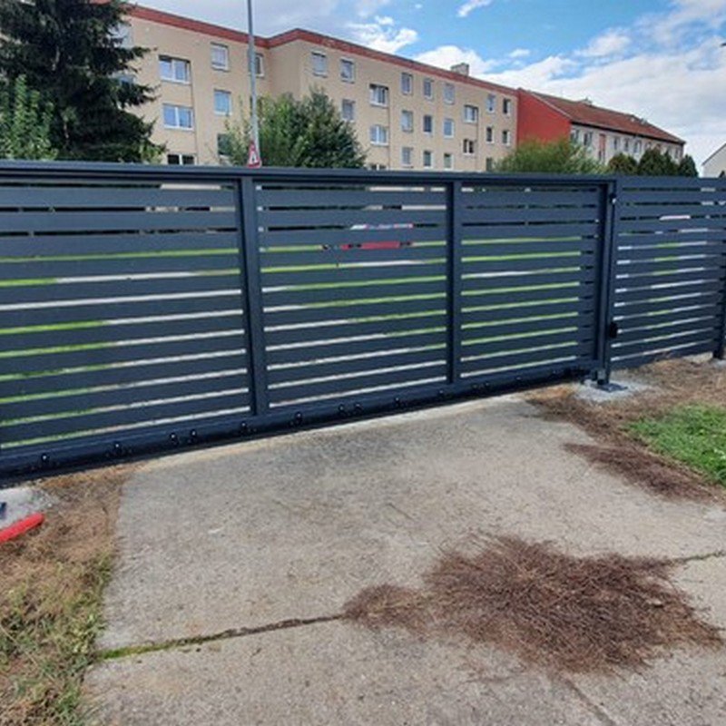 Kolejnicová brána s hliníkovou výplní
